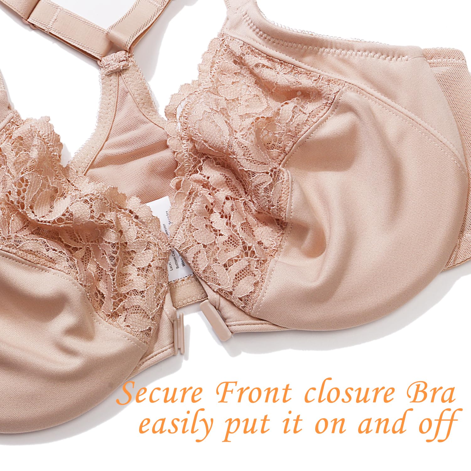 HACI Full Coverage Front Closure Bra Plunge V Racerback Plus Size Non Padded Underwire—