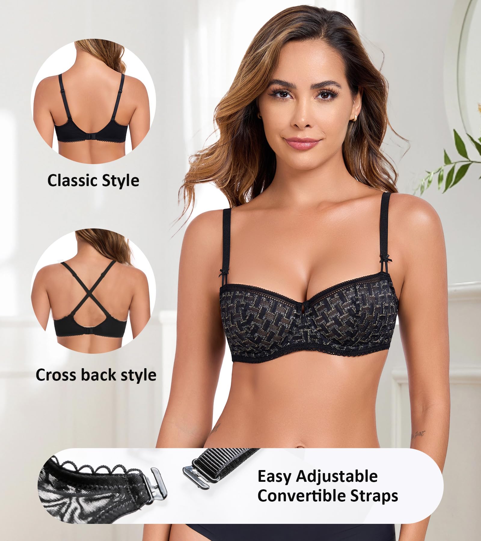 - Convertible Bra: Fully adjustable straps easy to change traditional style to cross back style, meet your wearing needs for different outfits.