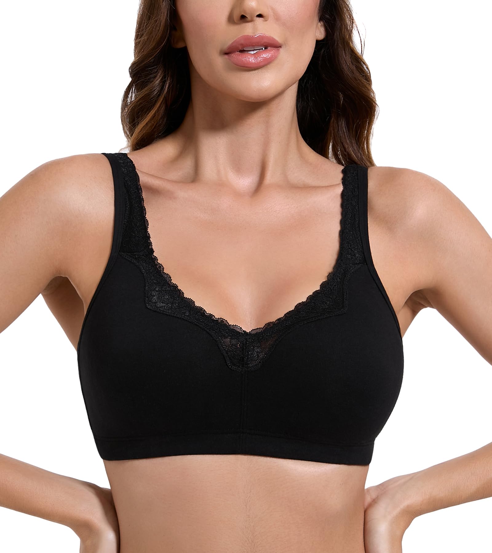 HACI Women's Comfort Cotton Bra Plus Size Everyday Non Padded Wirefree Lace Floral