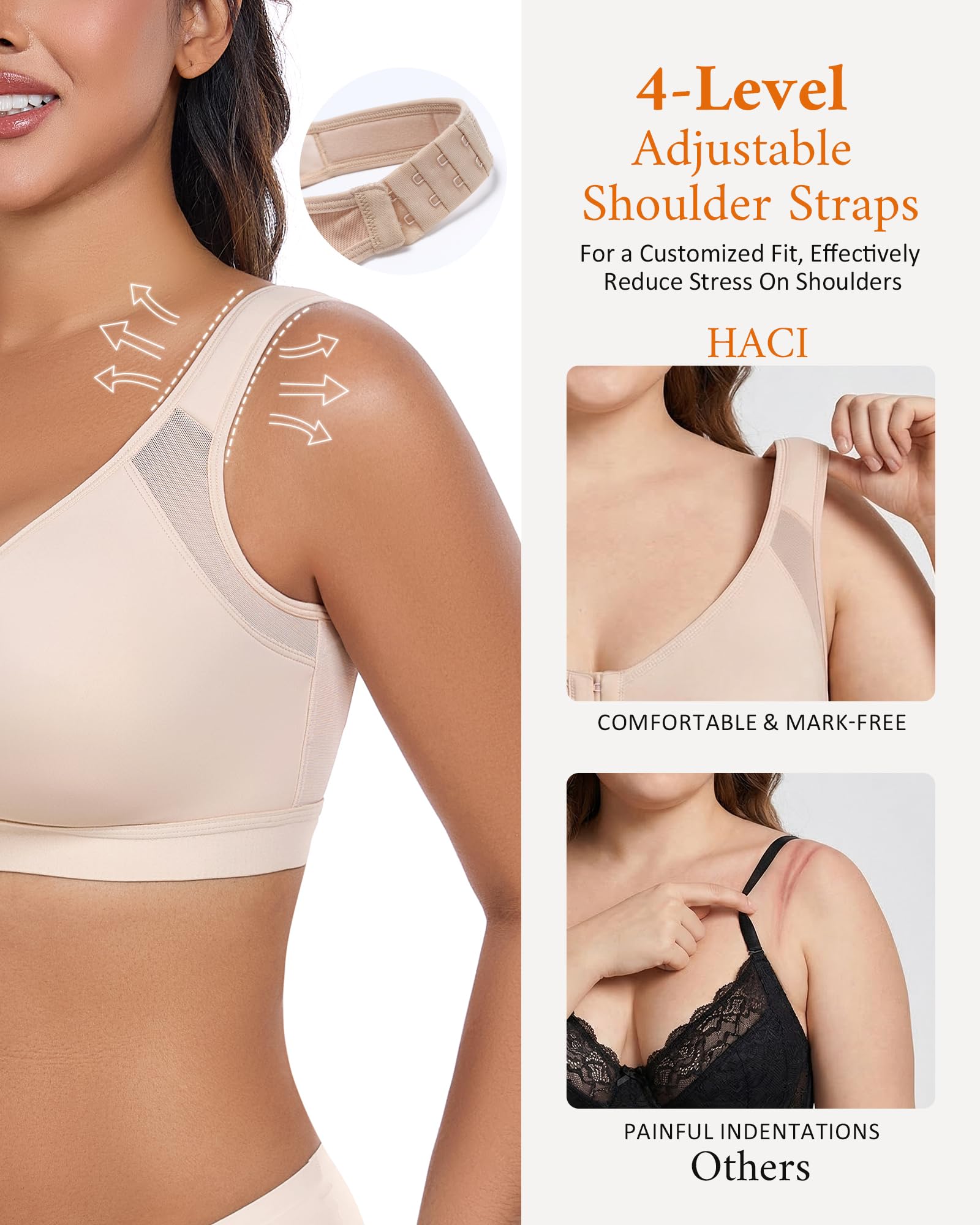 -7%HACI Women's Front Closure Posture Bra Full Coverage Back Support Everyday Wireless Comfy Unpadded Cup—