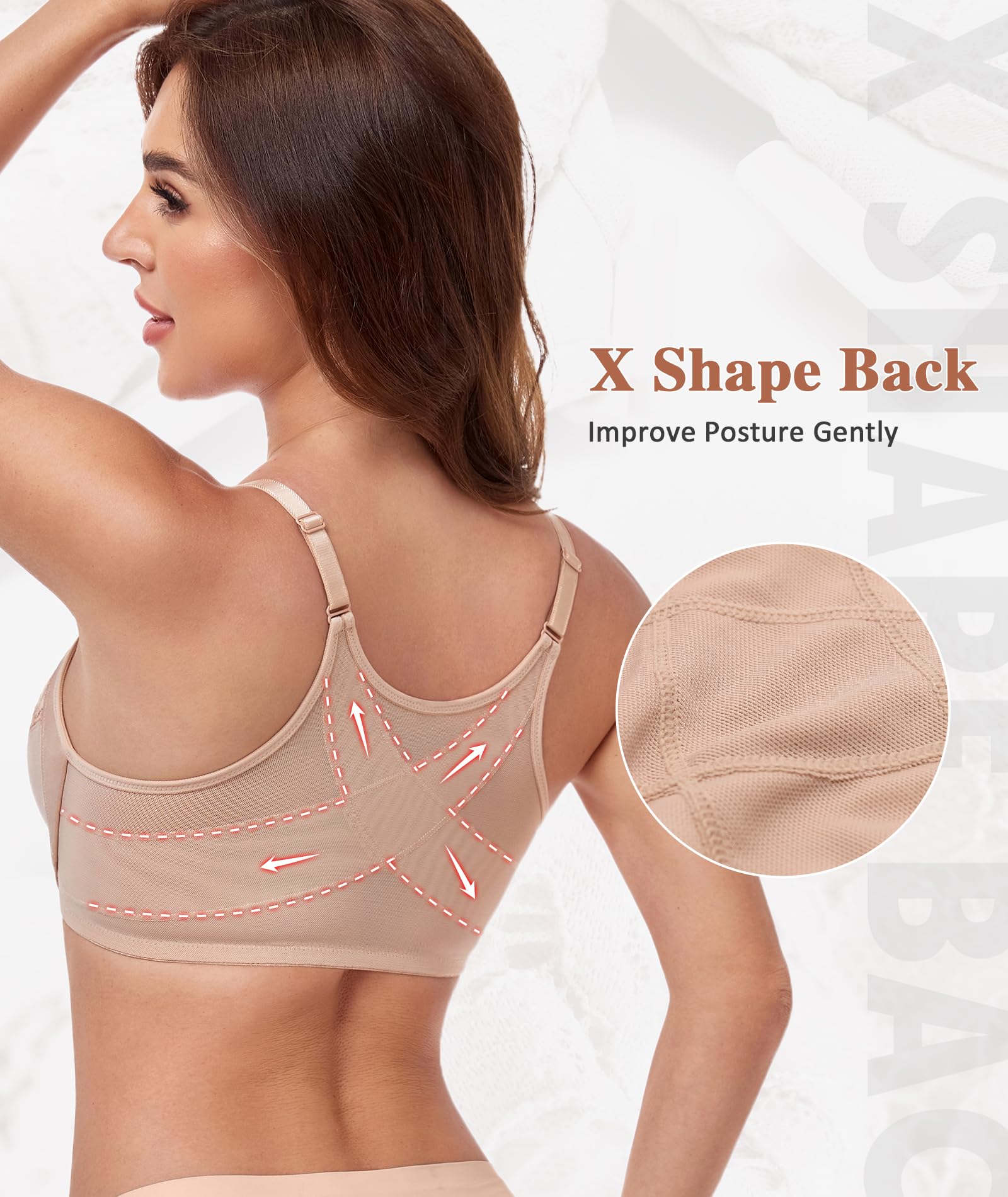 HACI Women's Front Closure Posture Bra Underwire Unpadded Back Support Everyday Full Coverage Plus Size