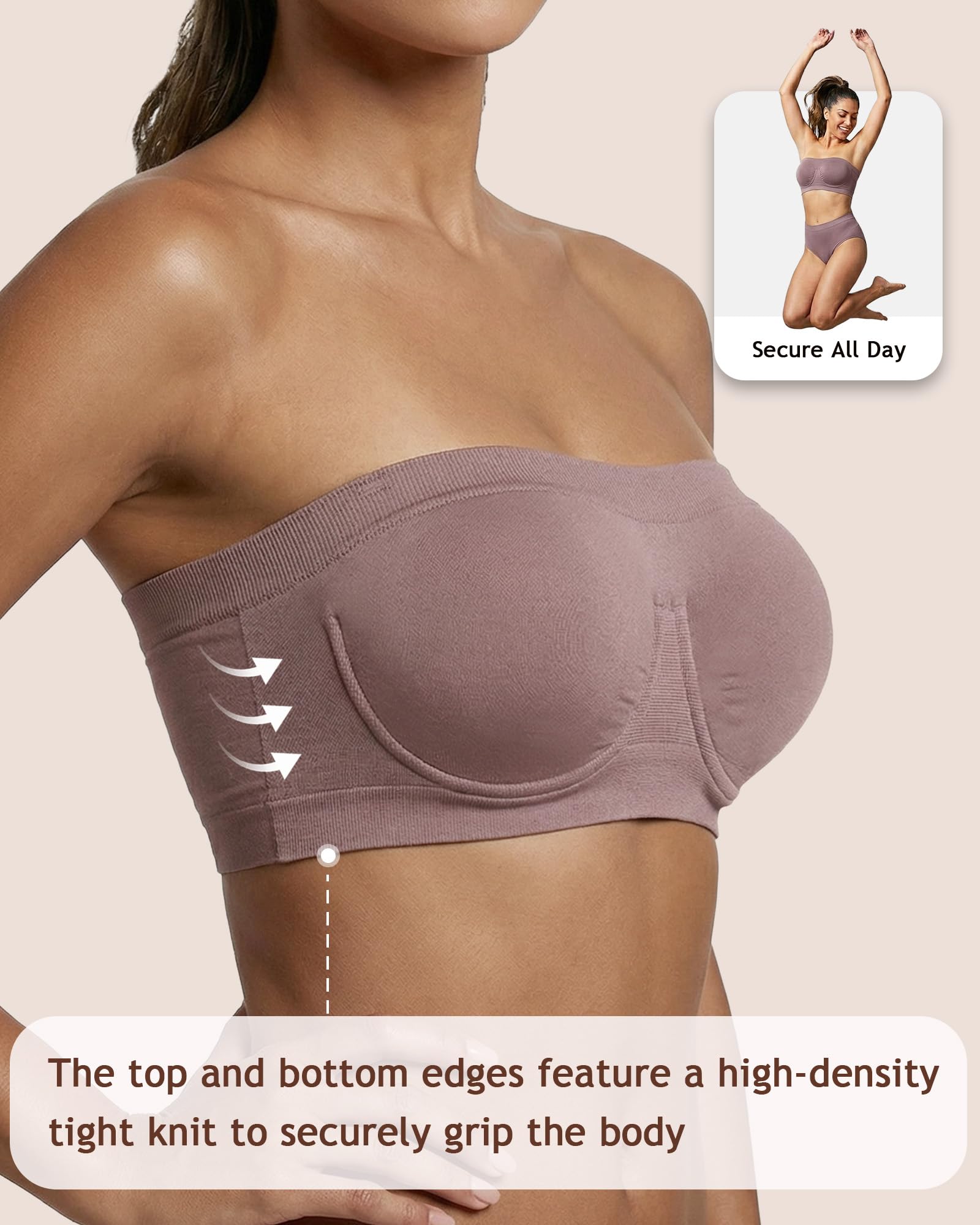 - Supportive and Seamless: Cushioned Underwire, offer decent support with comfort. Seamless strapless bandeau, give you a invisible look under the clothes.